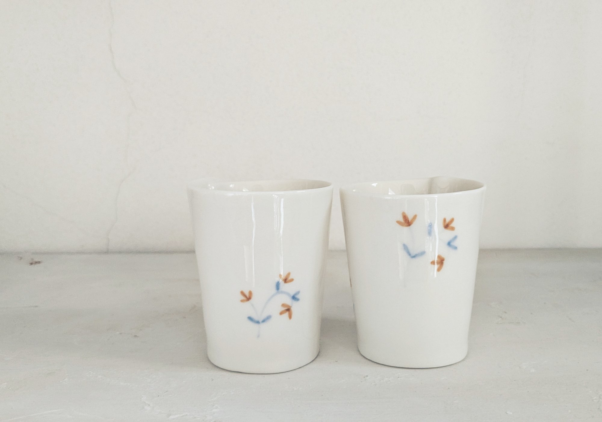 Bicchierini in porcellana completamente realizzati e dipinti a mano.