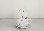 Tazzine con piattino in porcellana completamente realizzate e dipinte a mano.