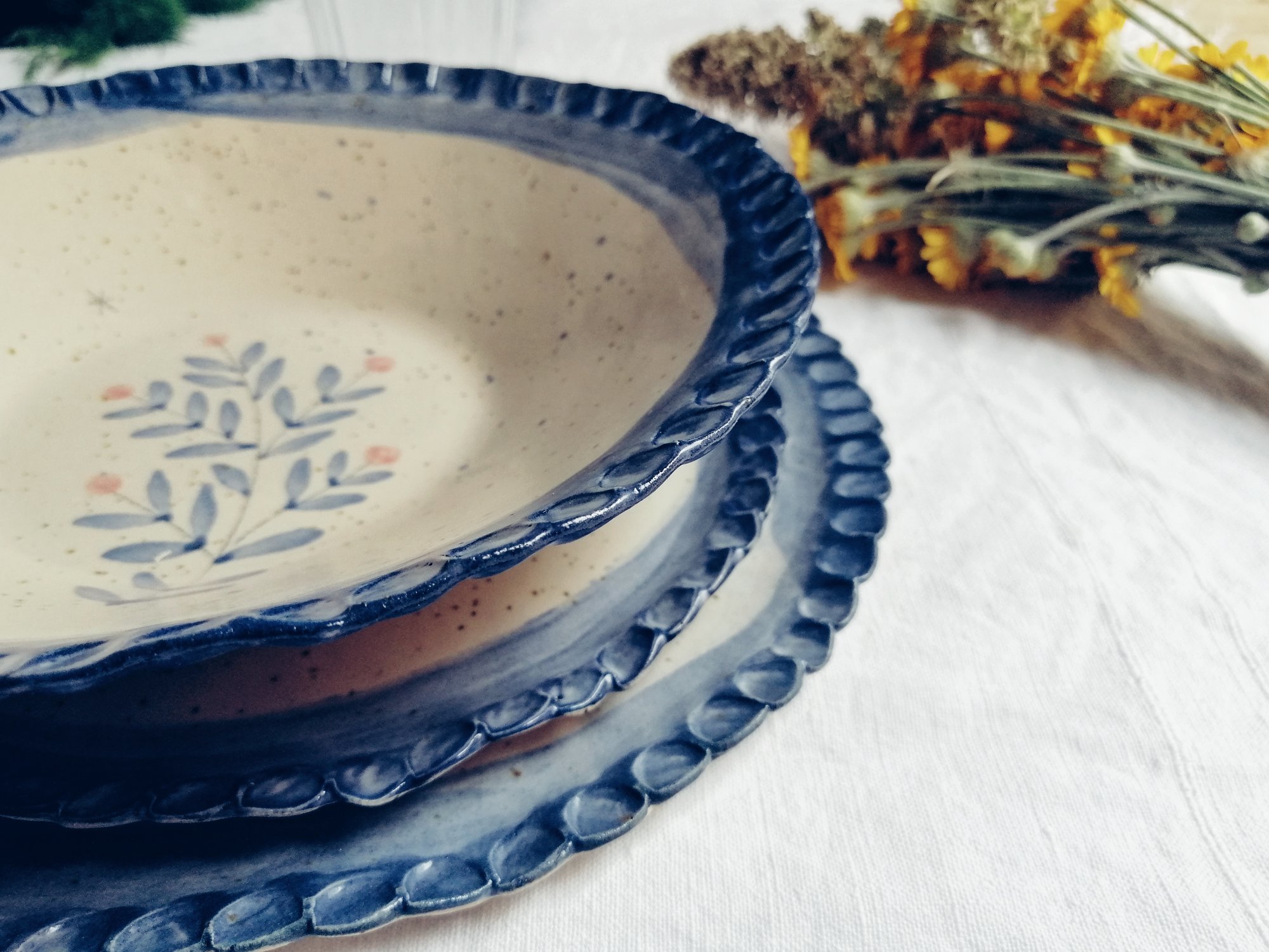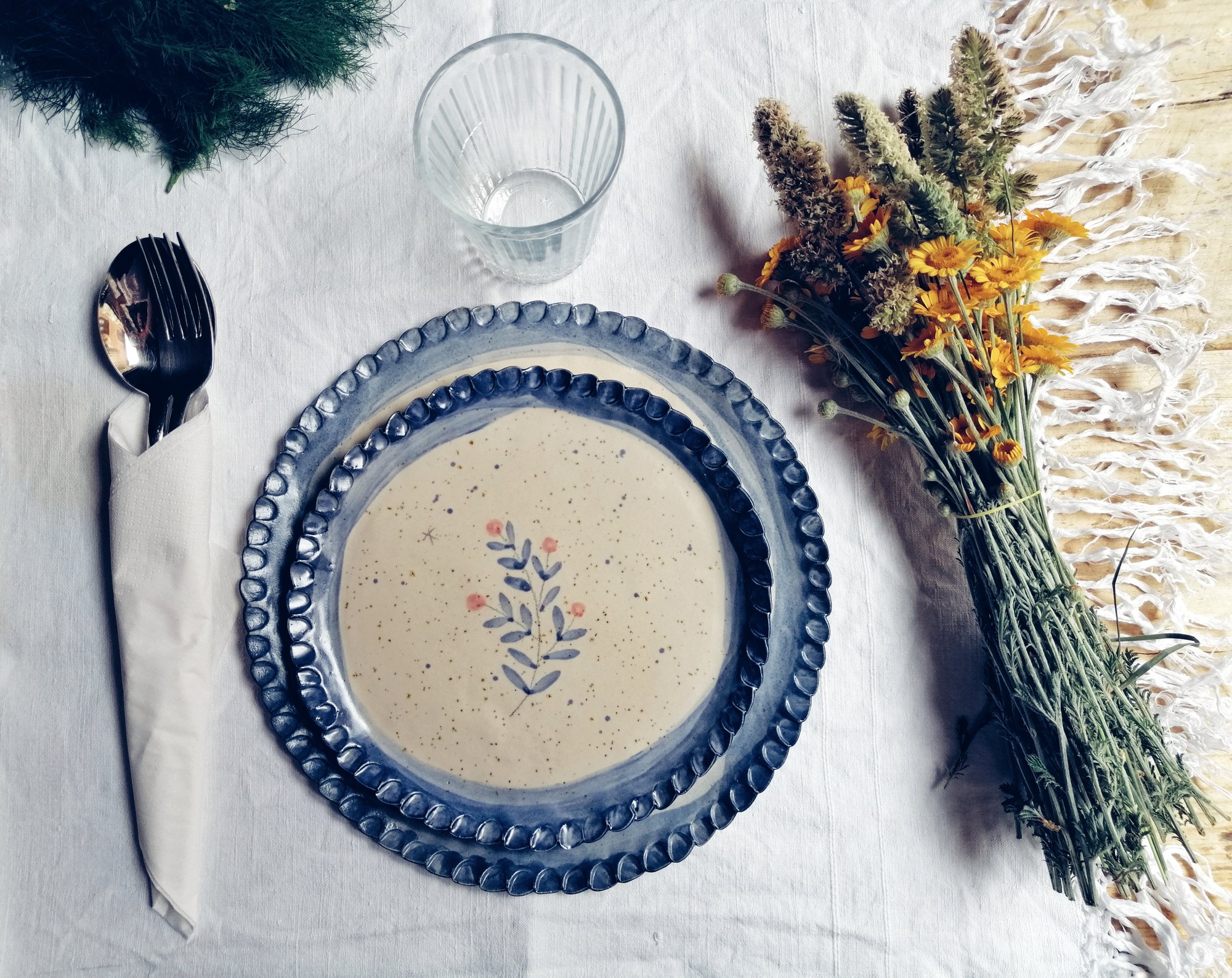 E' possibile scrivermi per richiedere il preventivo avendo indicativamente scelto il tipo di pezzi (piatto fondo, piatto piano, piatto dessert, ciotola da zuppa), il numero di sedute e i colori (personalizzabili in base ai gusti: blu cobalto, rosa, verde salvia, verde petrolio, ocra, blu mare, bruno scuro, carta da zucchero, rosso).