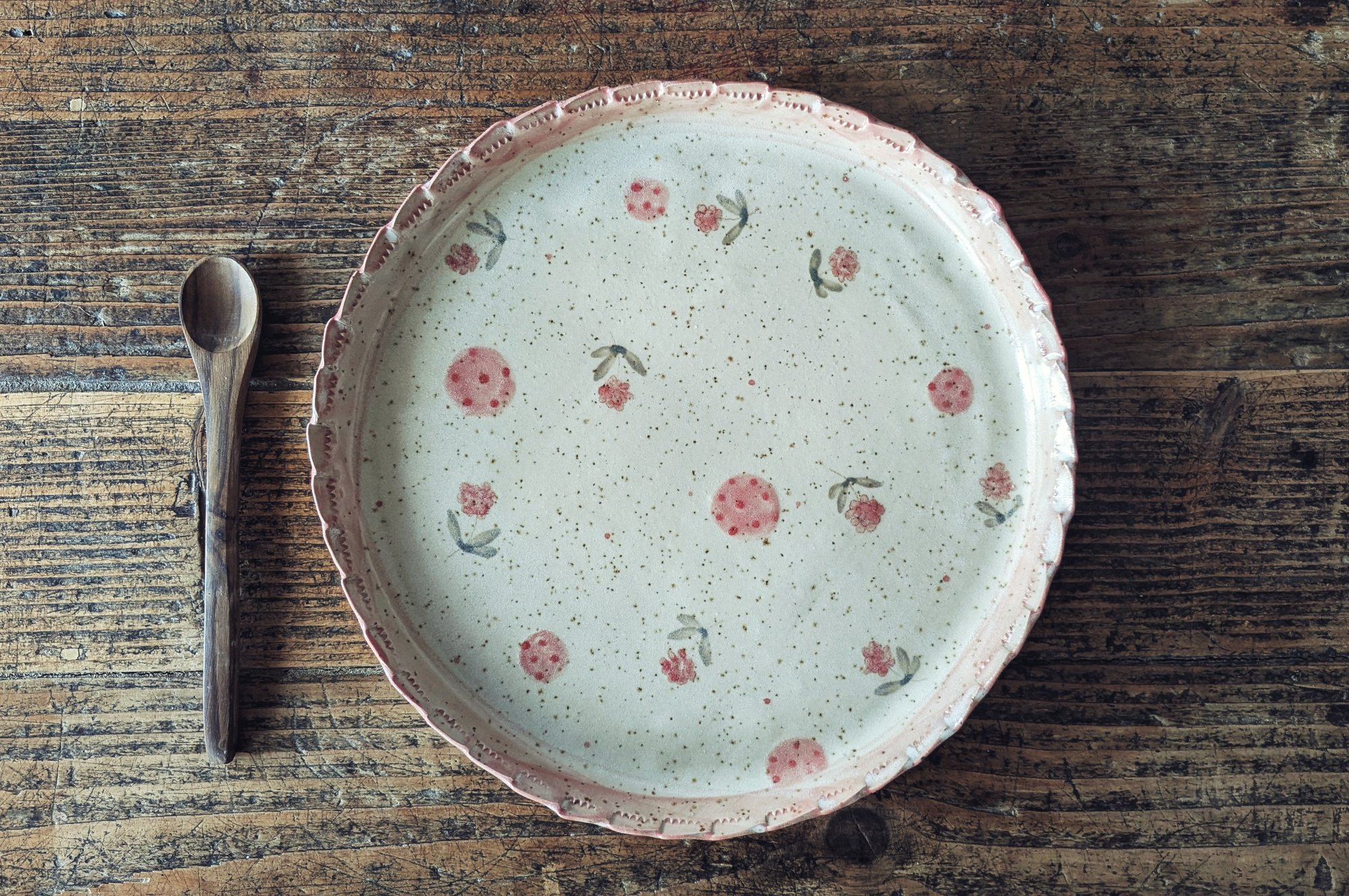Tortiera in grès completamente realizzata e dipinta a mano.
