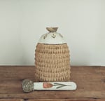 Zuccheriera con cucchiaino abbinato in grès, completamente realizzata e dipinta a mano.